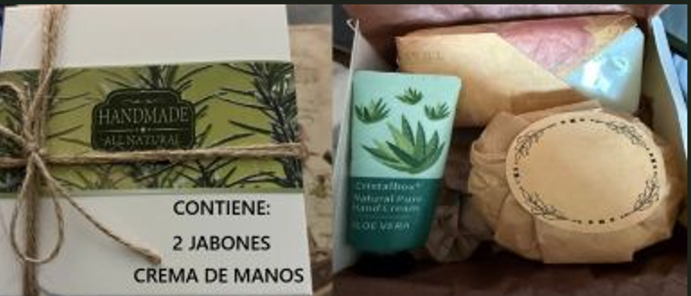 Este arreglo contiene dos jabones seleccionados a su gusto y una crema de mano.